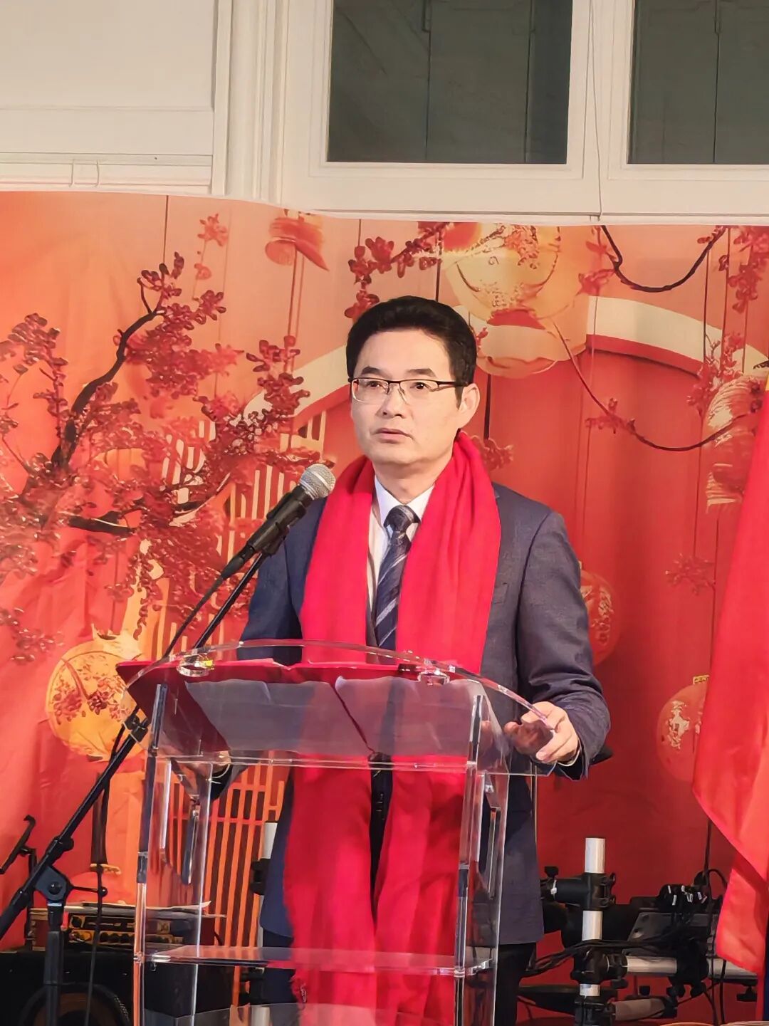 何总领事致以美好的新春祝福,高度赞赏包括蒙彼利埃在内的南法侨胞和各界友人对中法友好合作的大力支持。他表示,新的一年总领馆愿同南法各界携手努力,推动双边各领域务实合作再上新台阶。